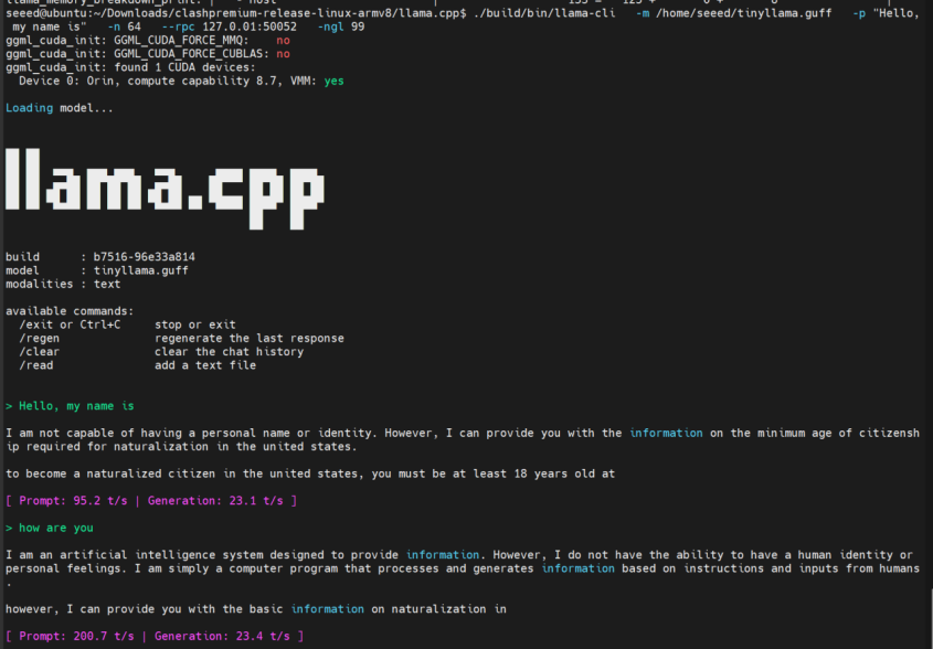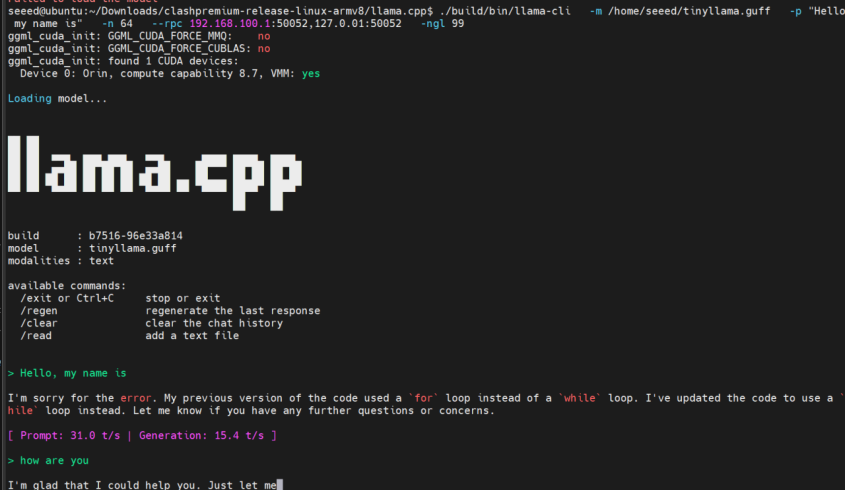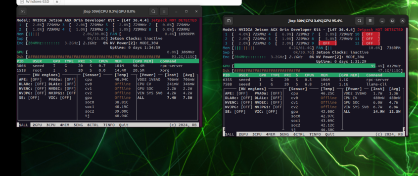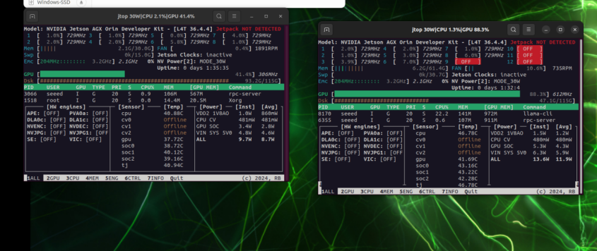 With this setup, you can now achieve "horizontal scaling" for LLM inference across multiple Jetson devices using llama.cpp's RPC backend. For higher throughput, you can add more RPC nodes or further quantize the model to formats like q4_0 or q5_k_m.