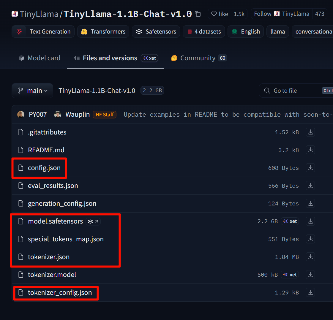 Download these files and place them in a self-created TinyLlama-1.1B-Chat-v1.0 folder.