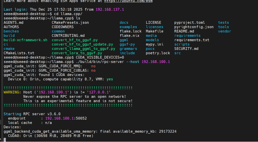 CUDA_VISIBLE_DEVICES=0 ./build/bin/rpc-server --host 192.168.100.1