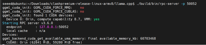CUDA_VISIBLE_DEVICES=0 ./build/bin/rpc-server -p 50052