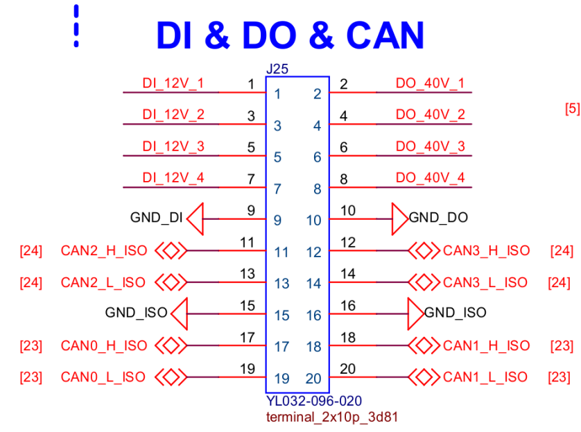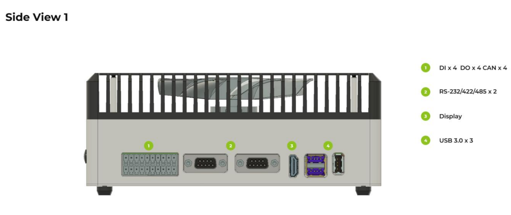 | DI/DO/CAN | 1x 2x10P 3.81mm 端子块 - 4x DI @12V + 4x DO @40V + 4x CAN(支持 CAN-FD,电气隔离) | |