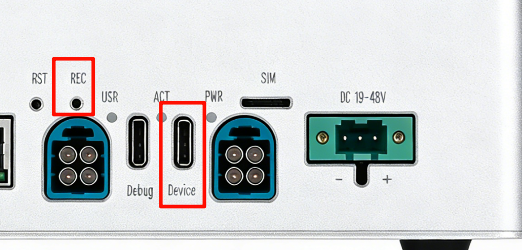 步骤 1. 使用 USB Type-C 数据传输线连接 USB2.0 DEVICE 端口和 Ubuntu 主机 PC。