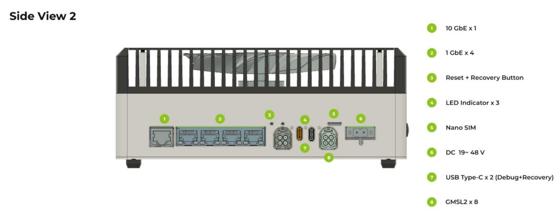 - GMSL2 视觉:单个 GMSL2 接口(1x)用于高速摄像头连接