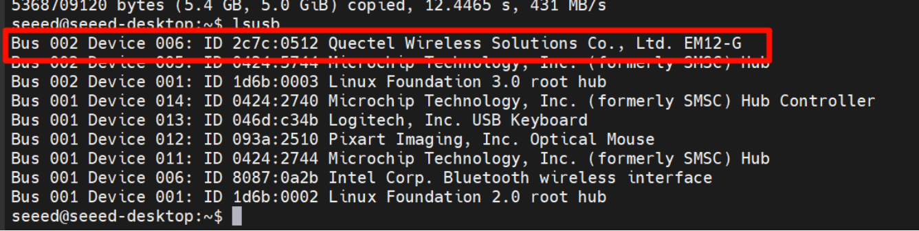 步骤 5. 在 Linux 主机 PC 上,打开终端窗口并输入命令 lsusb。如果返回的内容根据您使用的 Jetson SoM 有以下输出之一,则开发板处于强制恢复模式。