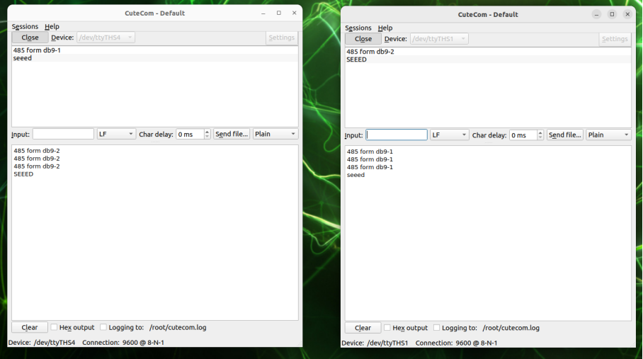 步骤 4:发送测试数据 发送测试数据(例如 "485 test from jetson")并验证从外围设备接收的数据。