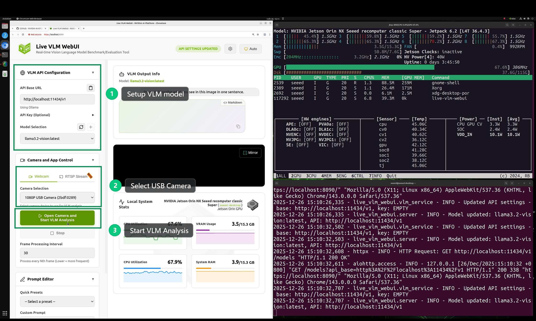 本教程将向您展示如何在 reComputer Super J4012 上部署 Live VLM WebUI。