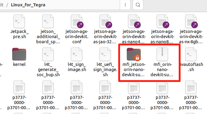 此过程需要相当长的时间。完成后,将在 Linux_for_Tegra/ 目录中生成带有 mfi_ 前缀的文件和一个 tar.gz 压缩包。