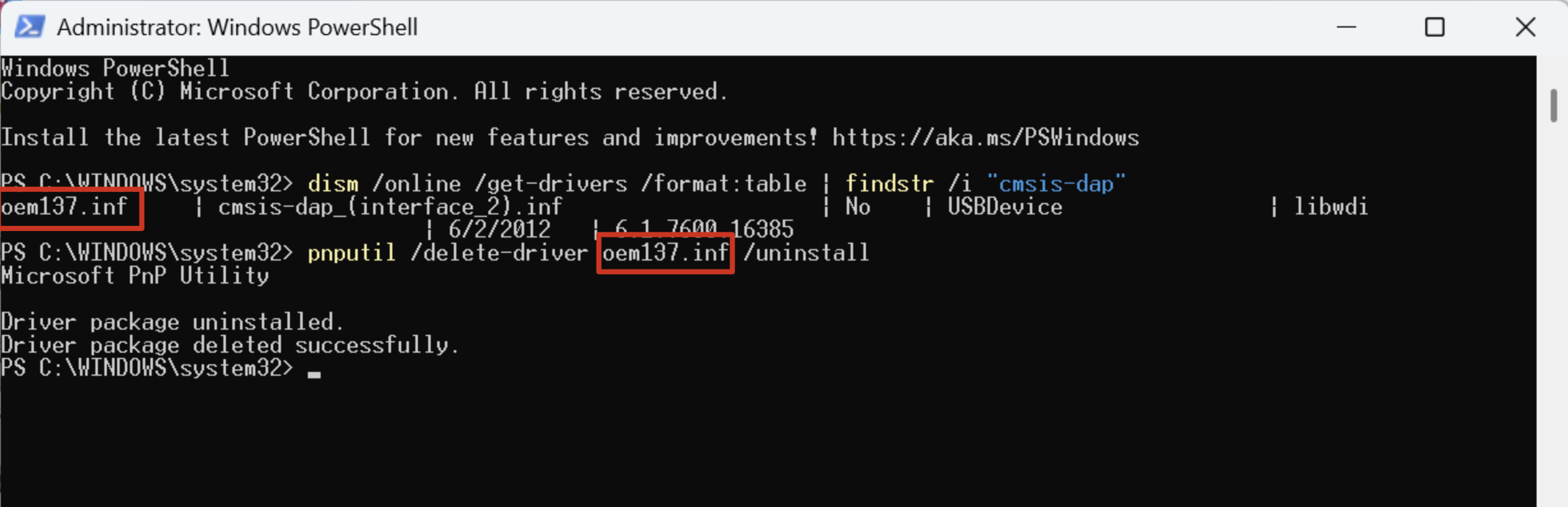 dism /online /get-drivers /format:table | findstr /i "cmsis-dap" -