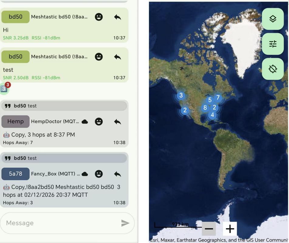 如果你还有另一台与 ESP32S3 MQTT 网关处于同一频段的 Meshtastic 设备,它也可以通过 ESP32S3 与互联网上的其他人进行消息传输。