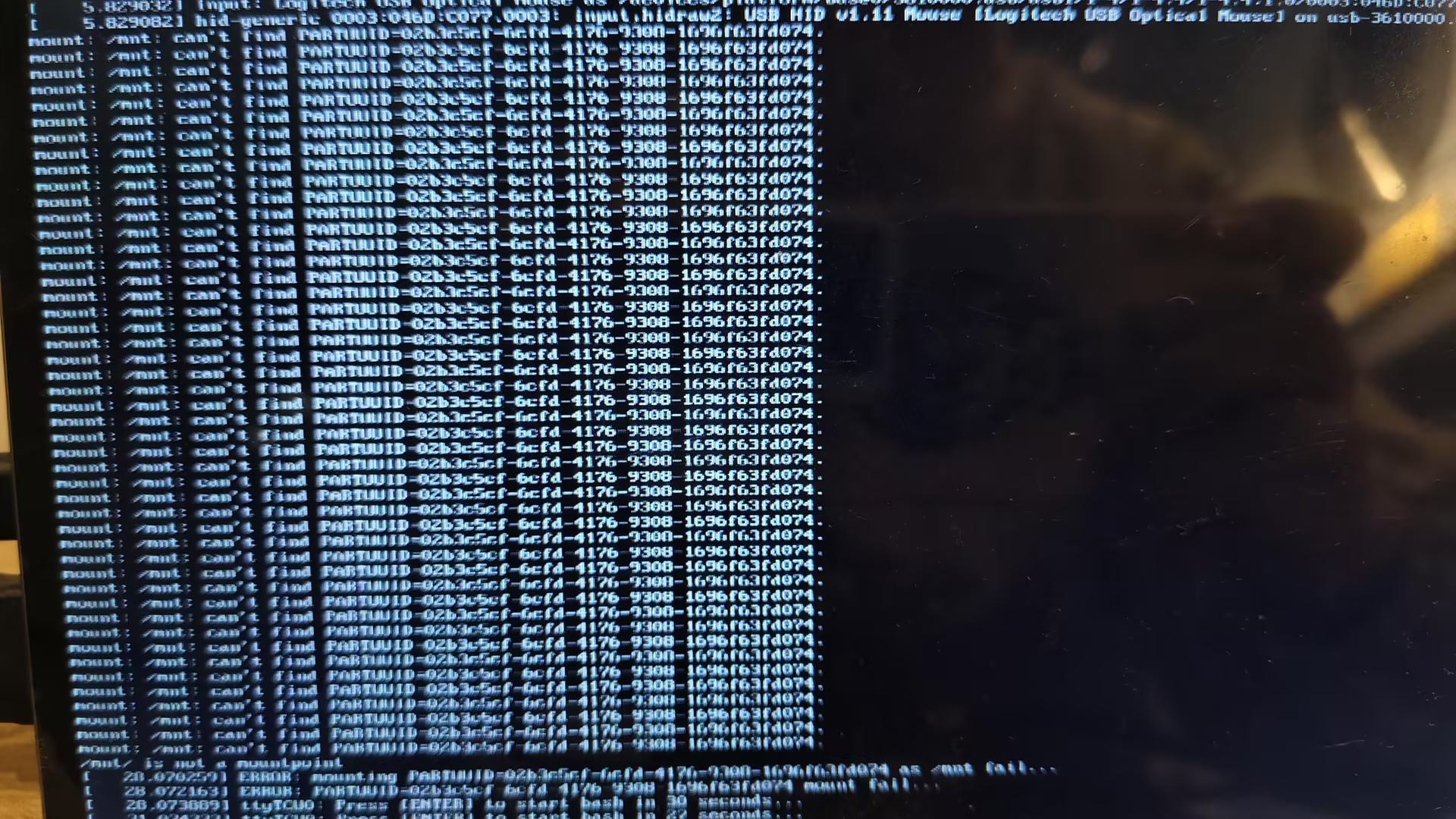 Initially, the system mysteriously fails to mount the user partition, resulting in continuous boot failures as shown in the image below: