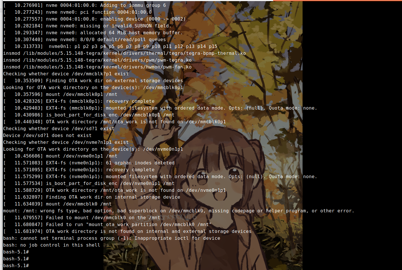 Even without modifying any Jetson kernel-related content, the Jetson device encounters a UUID-related error during boot and enters the recovery terminal. This issue prevents normal system startup and requires manual intervention to resolve.
