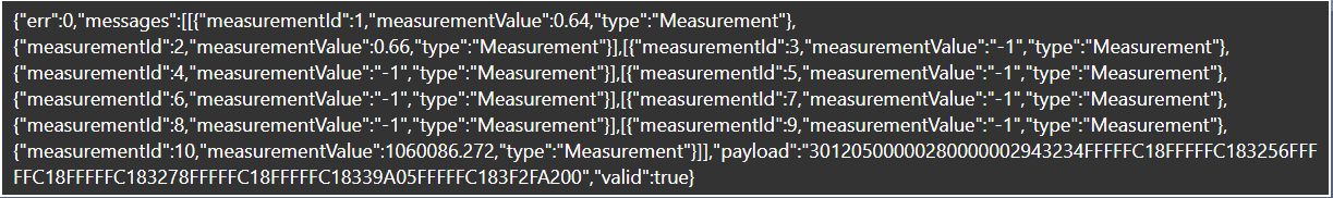 Each result contains 10 measurements, which correspond to the 10 RS485 channels: