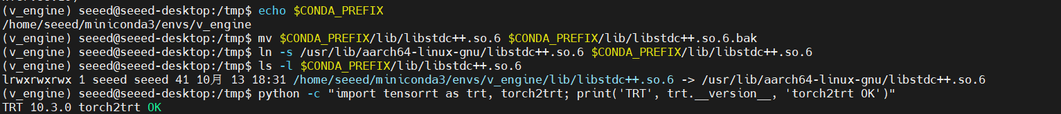 The libstdc++.so.6 file in the conda environment is outdated and does not have the symbol GLIBCXX_3.4.30. However, the TensorRT dynamic library /usr/lib/aarch64-linux-gnu/libnvinfer.so.10 in the system requires this symbol!