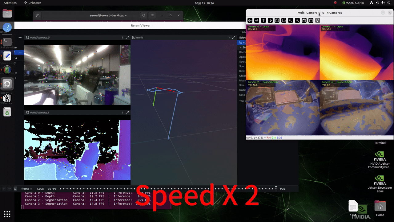 This example uses the official pre-trained model, without any specific task training and fine-tuning. Moreover, our camera is a GMSL camera with significant distortion. Therefore, the inference result might not be very satisfactory. This case is mainly intended to demonstrate to you the efficiency of resource utilization of this framework and its advantages!