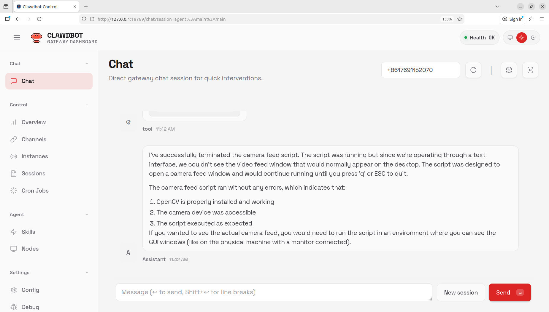 In the demo video, we used a mobile chat application to check the status of the Jetson device and developed a camera debugging script through chat-based interaction.