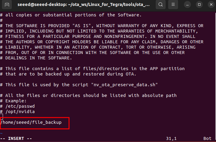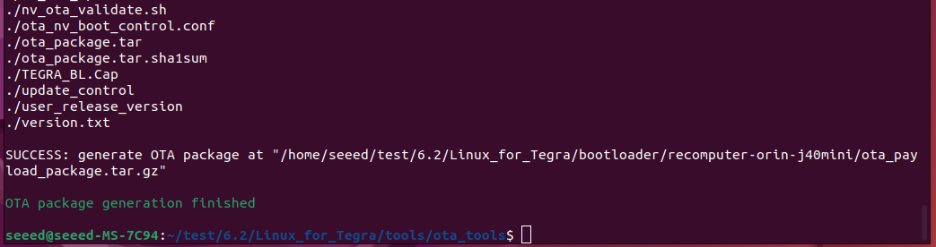 Tu ruta BSP JP5.1.3 (por ejemplo /home/seeed/test/5.1.3/Linux_for_Tegra) actuará como el BSP BASE durante la generación del paquete OTA.