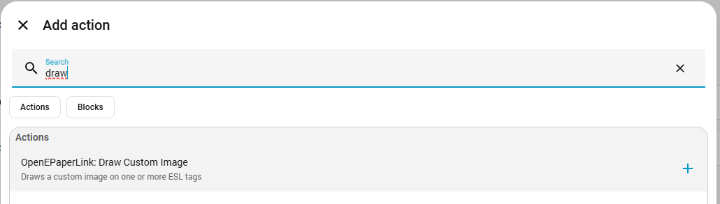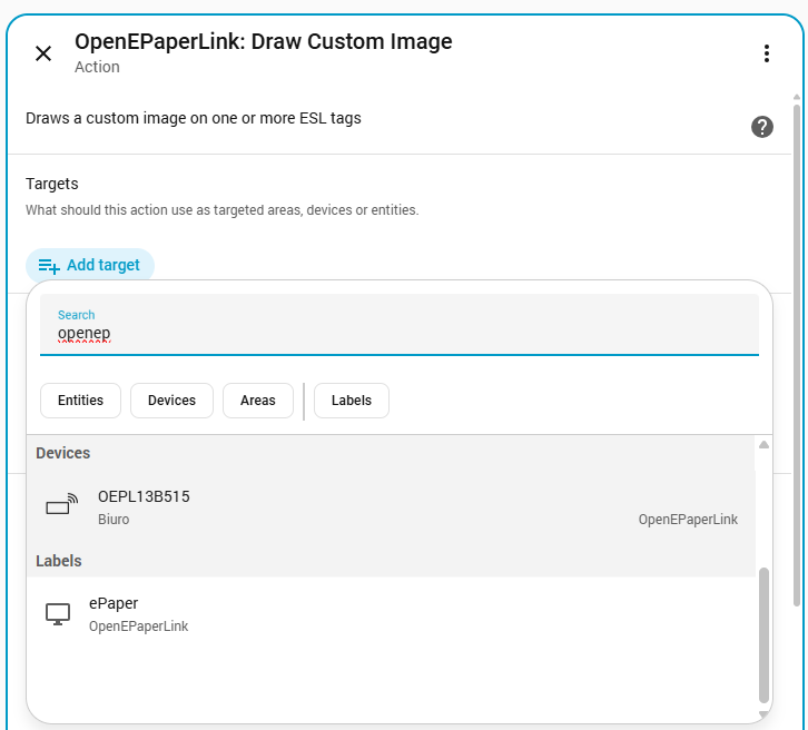 - Selecciona tu dispositivo OpenEPaperLink en la configuración de la acción.