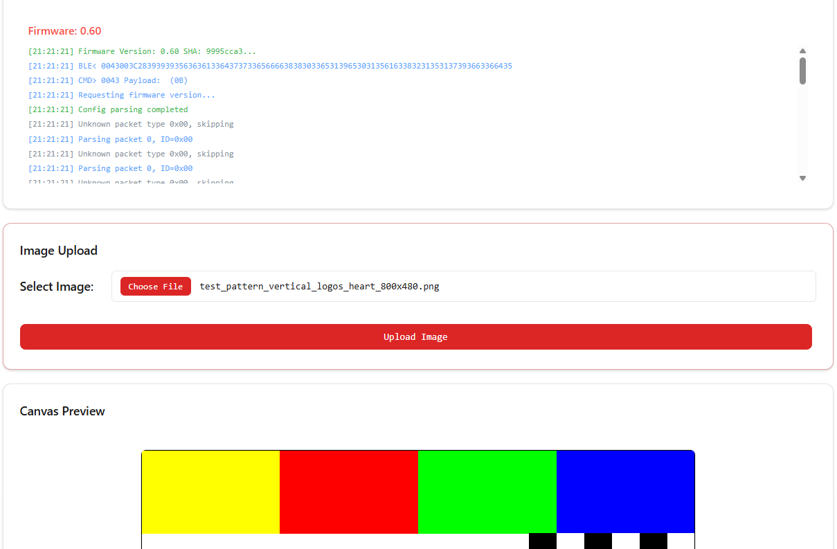 Haz clic en "Upload Image" para enviar la imagen a tu pantalla. El papel electrónico se refrescará y mostrará tu imagen.