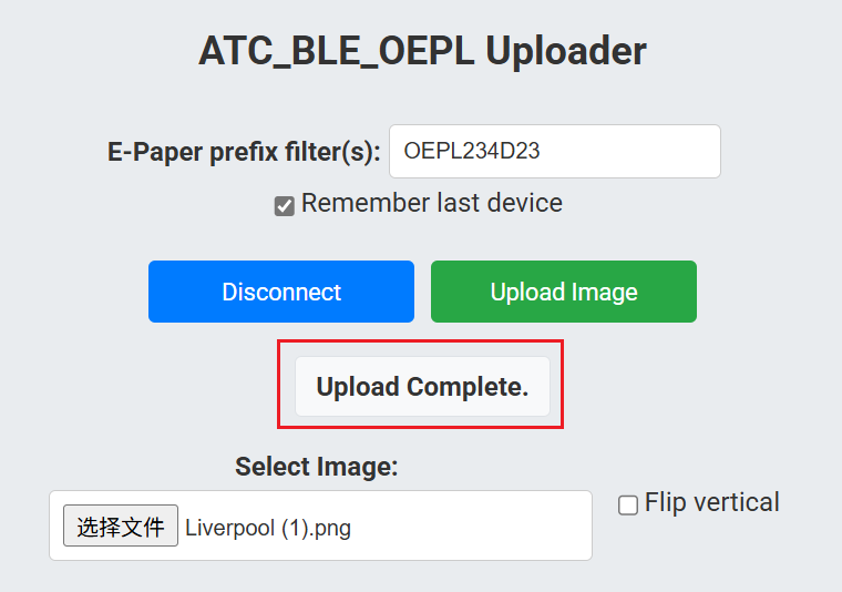 Después de que se complete la transferencia del archivo, simplemente haz clic en el botón "Upload Image" para subirlo al papel electrónico.