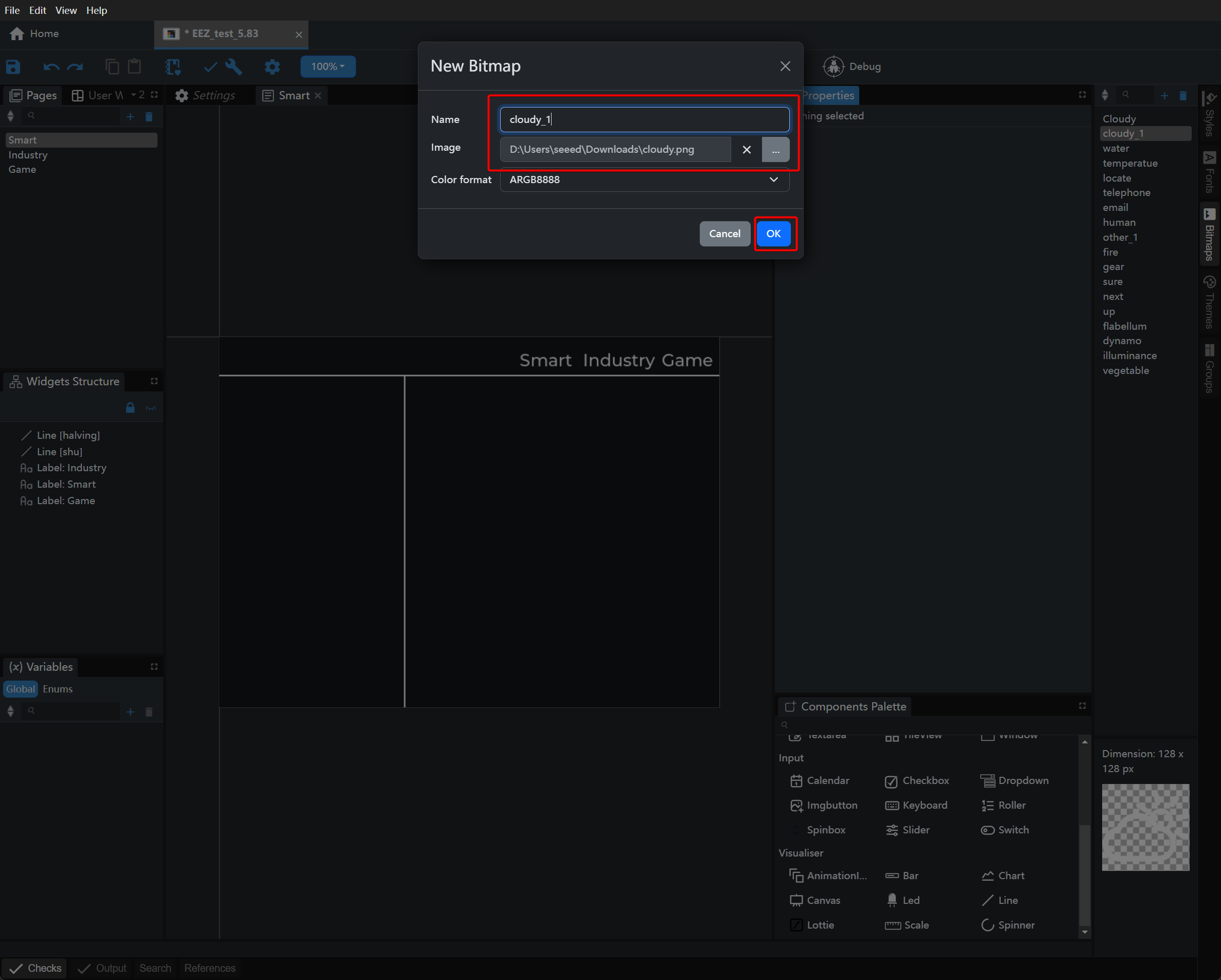 - Haz clic en la opción Bitmaps en la barra lateral derecha y agrega las imágenes requeridas.