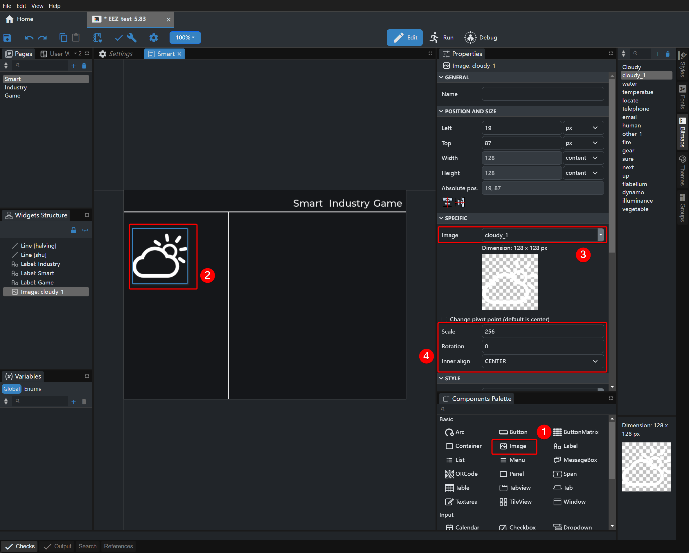 - Arrastra y suelta el componente Image en el lienzo, y usa la opción Scale para establecer su tamaño.