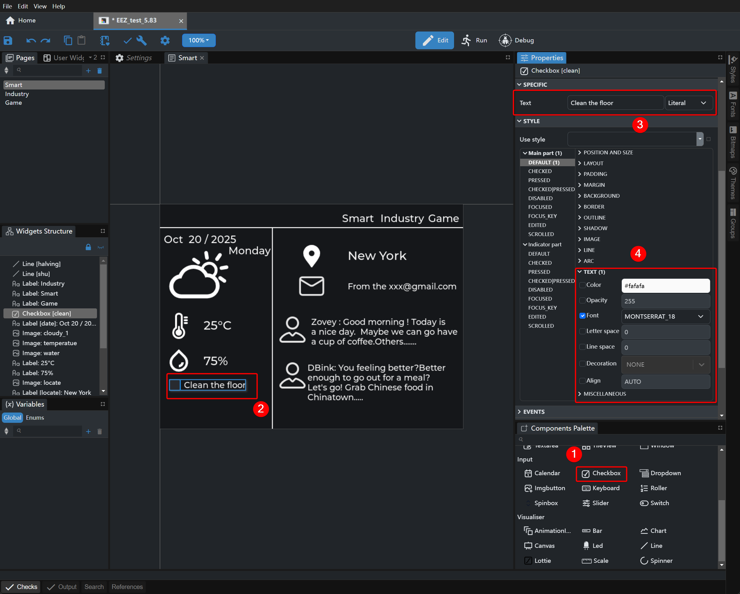 - Arrastra el componente Checkbox al lienzo, ingresa el contenido, luego ajusta el tamaño de fuente y color.