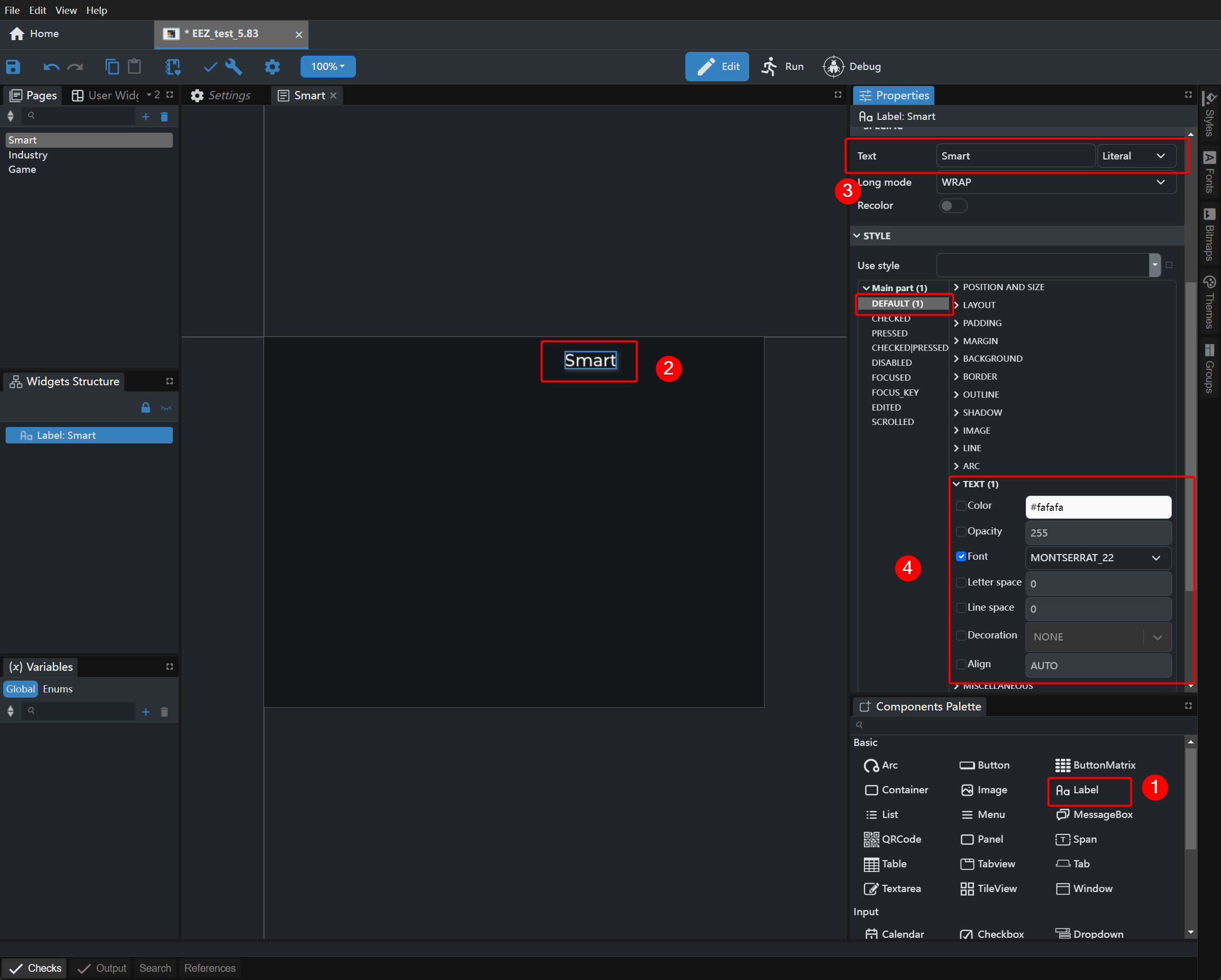 A continuación se muestran algunas configuraciones básicas y controles para el dibujo de UI basado en LVGL en EEZ Studio, así como la construcción de los archivos del proyecto.