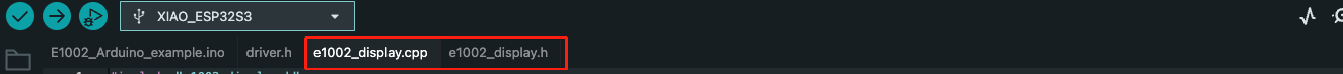 Paso 1. Abre el sketch de ejemplo a color de la librería Seeed_GFX: File > Examples > Seeed_GFX > ePaper > Colorful > HelloWorld