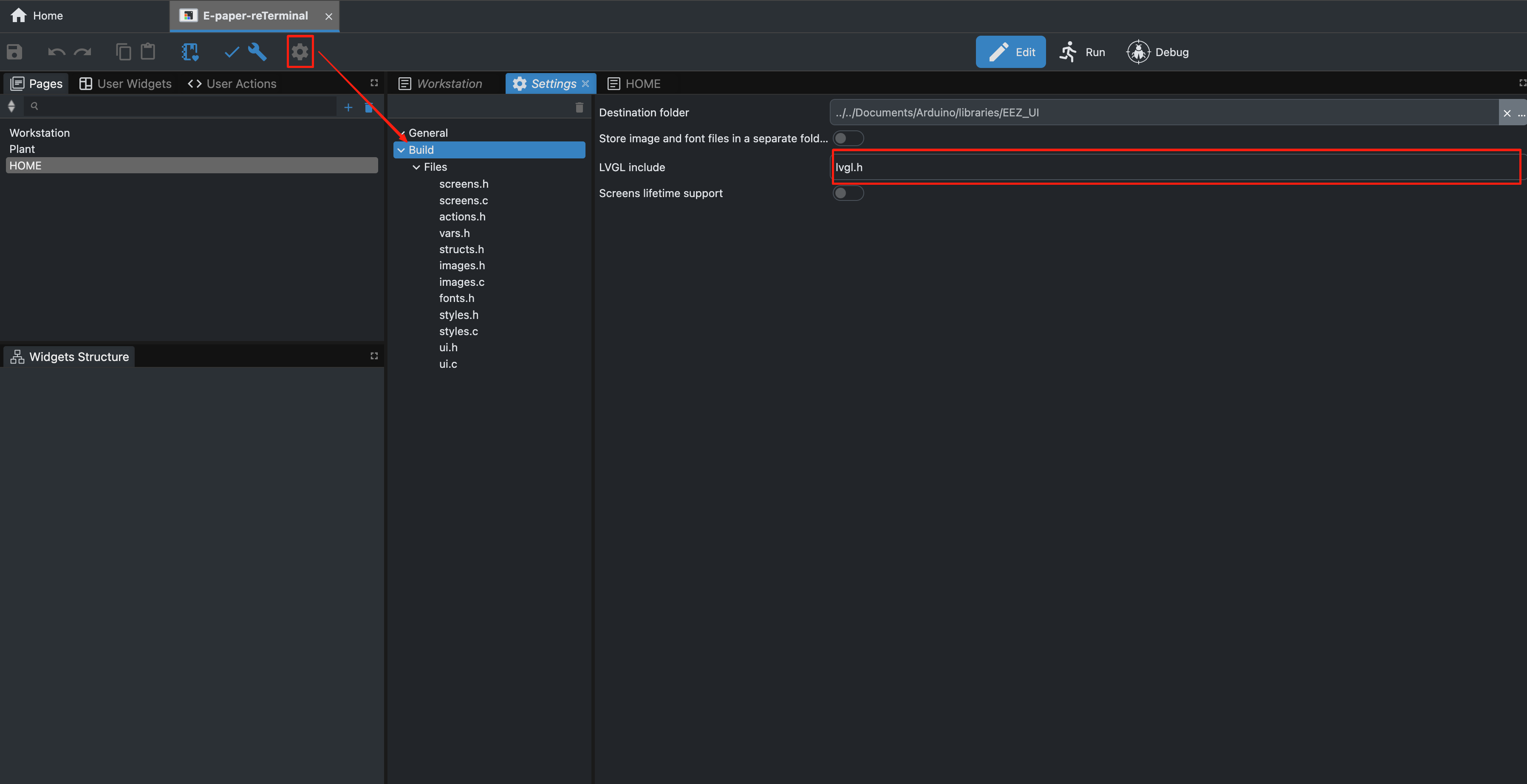 Al construir tu proyecto UI LVGL para el reTerminal E-paper, necesitas configurar apropiadamente los Ajustes del Proyecto de EEZ Studio para asegurar que los archivos UI generados sean compatibles con tu entorno Arduino o embebido.