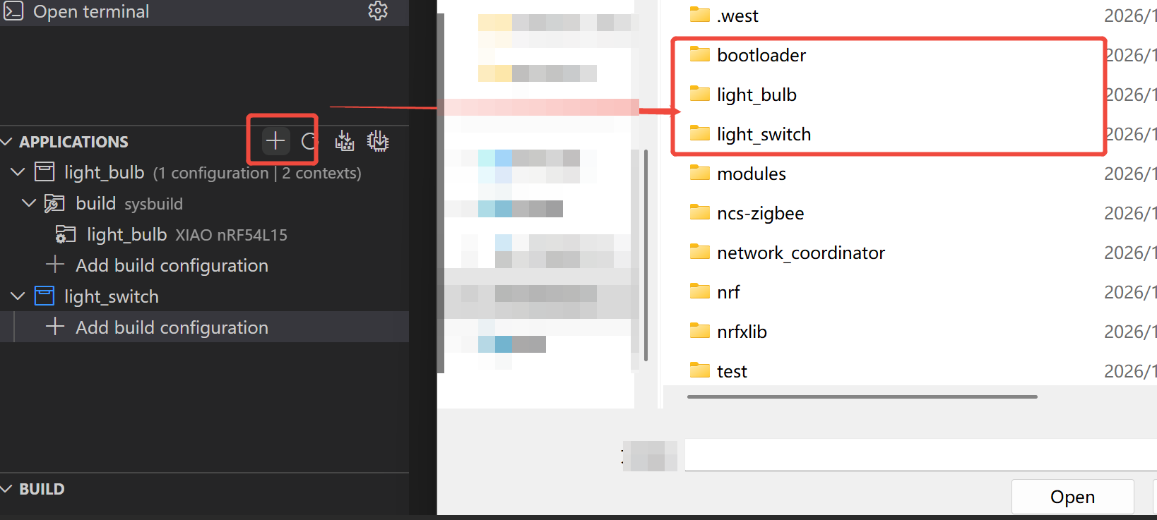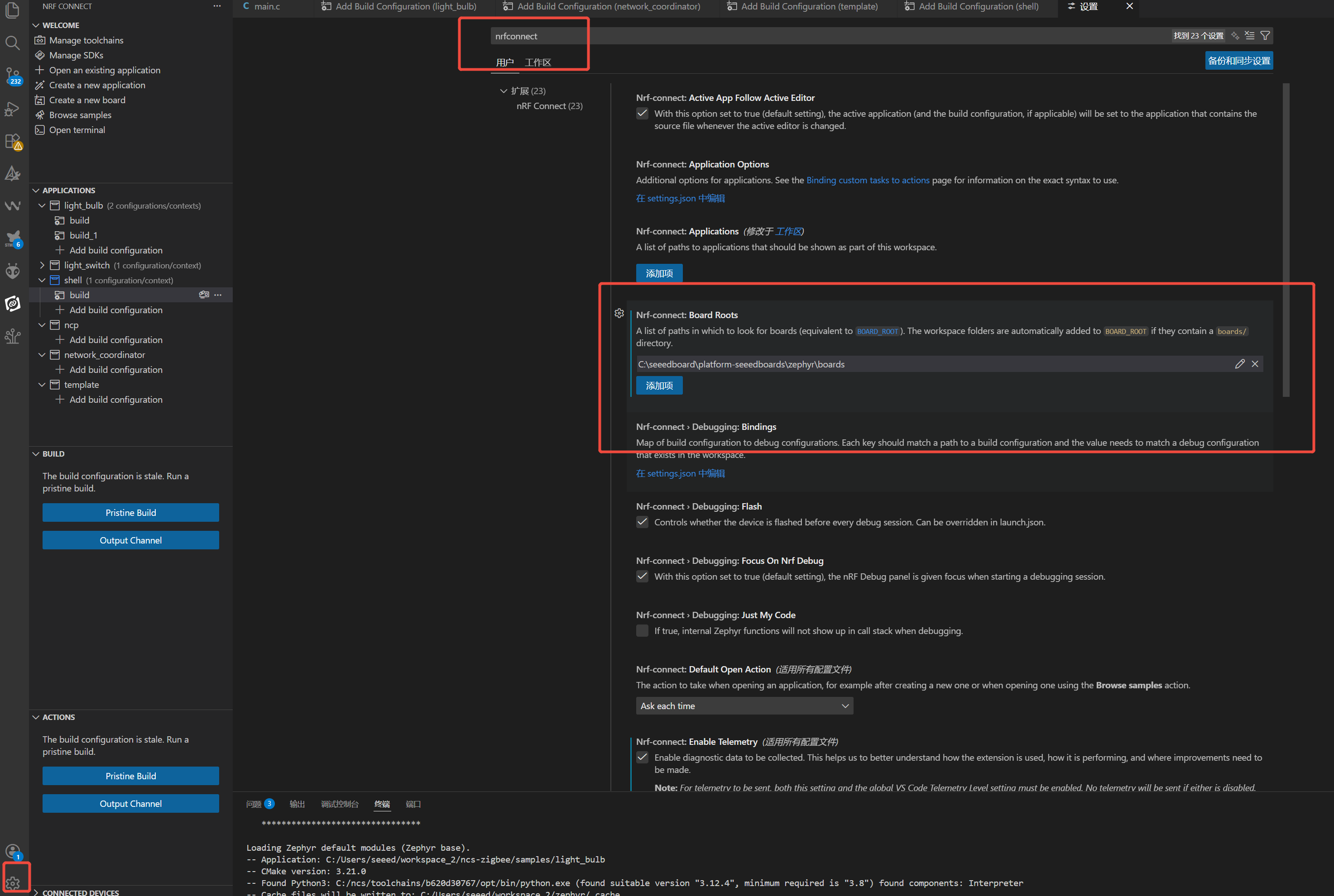 Esta guía te muestra cómo agregar una aplicación existente (tomando light_switch como ejemplo) a tu entorno VS Code, y compilarla y flashearla a tu hardware objetivo (tomando xiao_nrf54l15 como ejemplo).