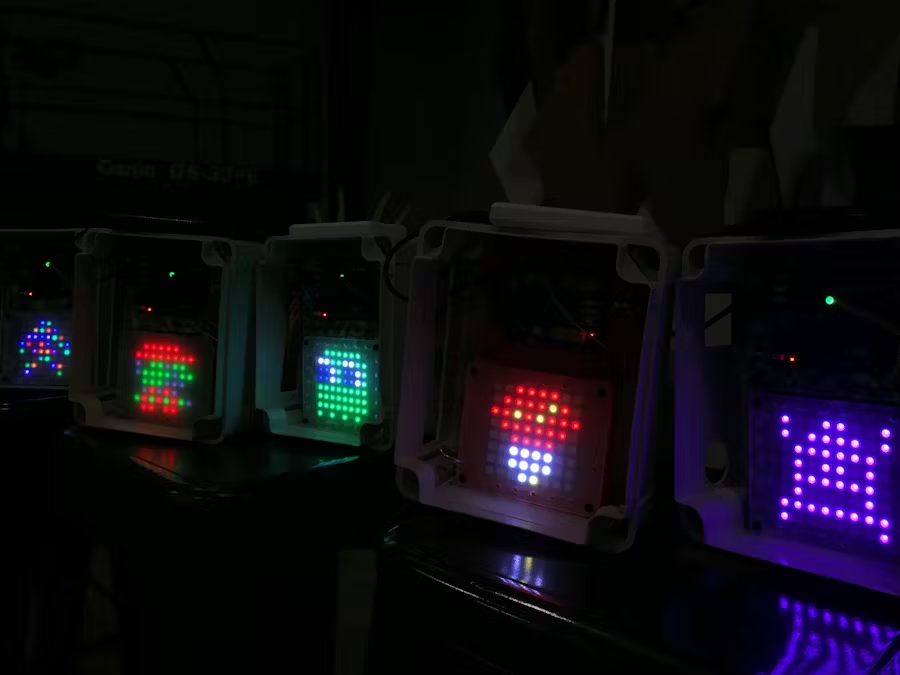 Para una demostración de proyecto más completa, el maker Luis ha construido un dispositivo LED Neo-pixel de 8x8 usando XIAO SAMD21, Grove Shield para XIAO y una Matriz LED, que puedes usar con MicroBlocks para pintar patrones de píxeles impresionantes sin escribir código complejo. Un tutorial paso a paso se puede encontrar en Hackster.