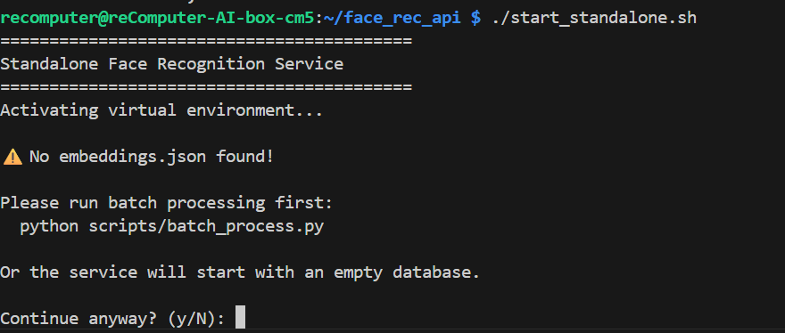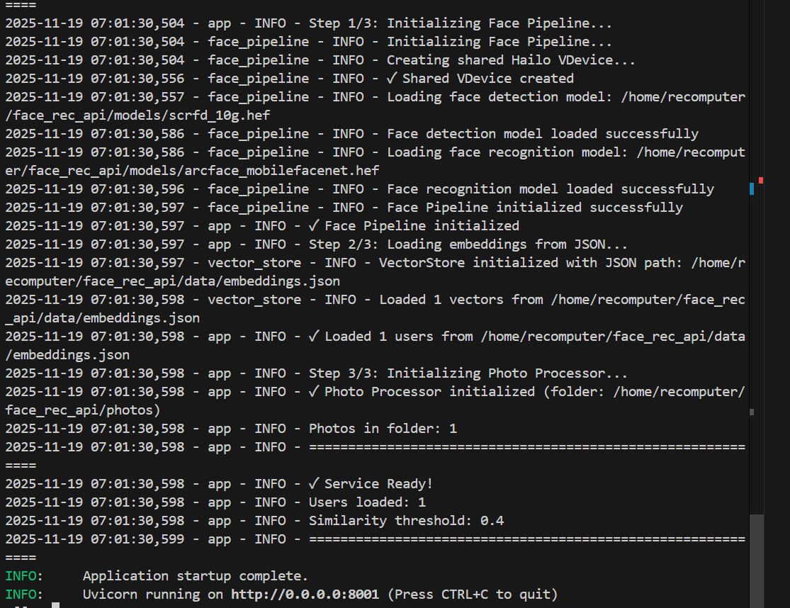 The service is now running. The Watcher can communicate with the reComputer to check if a face exists in the database. You can stop the service with