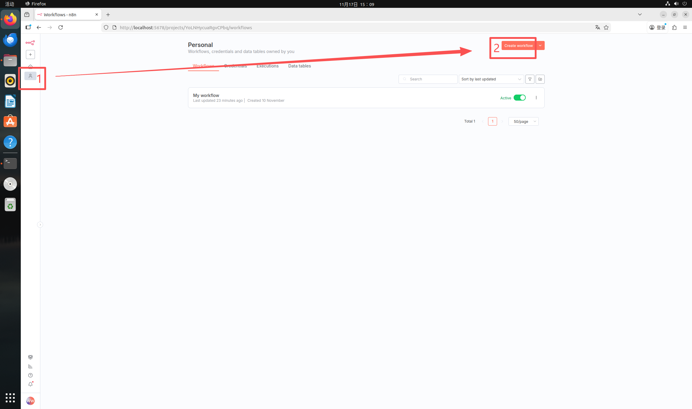 1. Install n8n (in virtual machine)