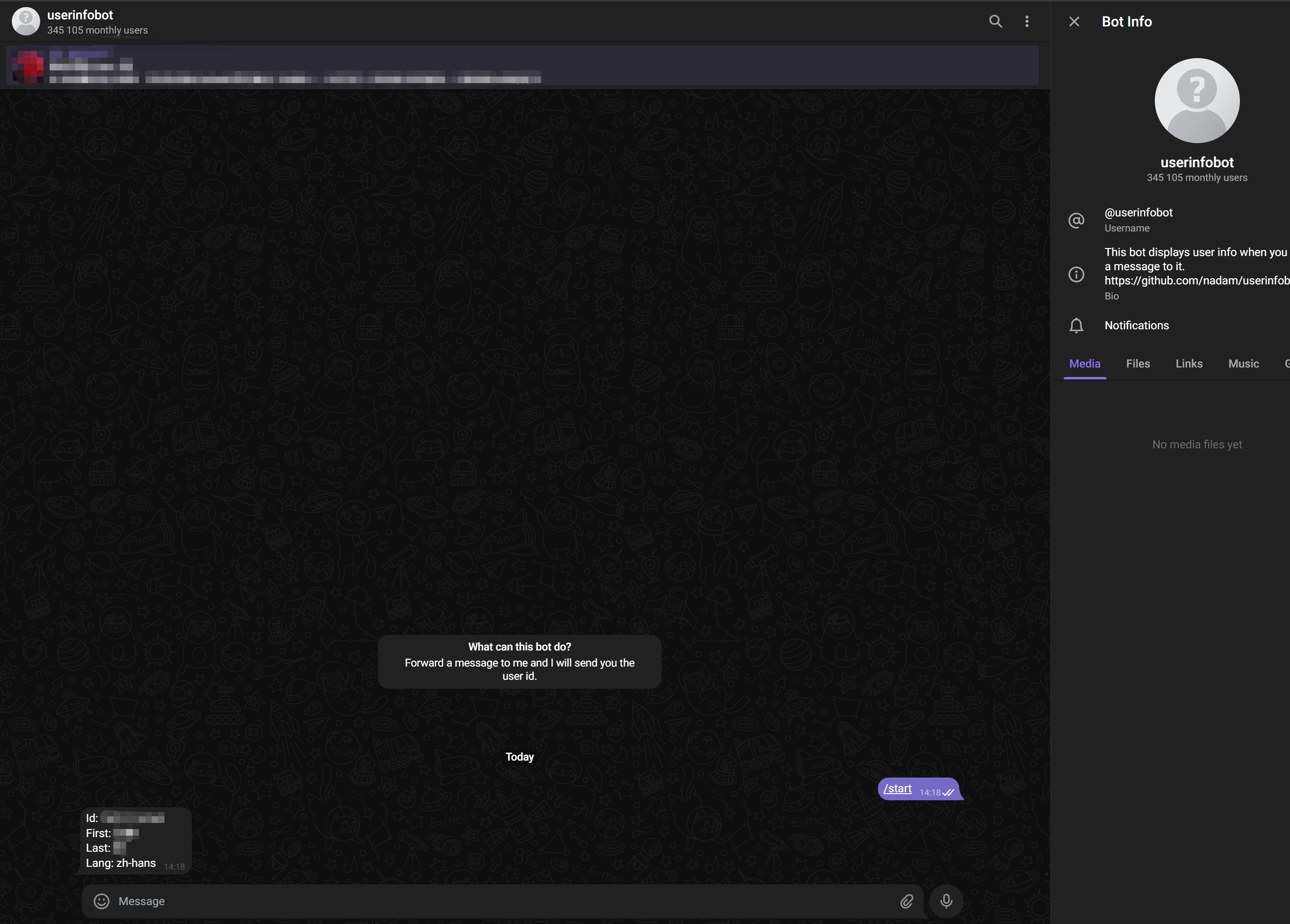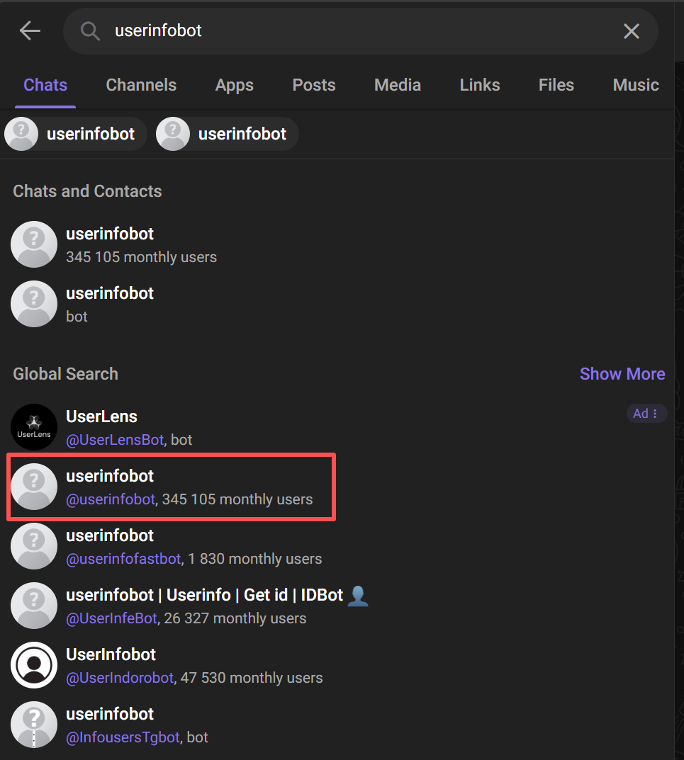 (2) Search userinfobot to get your personal Chat ID