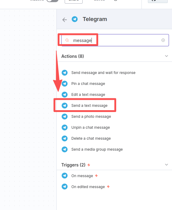 After clicking, continue to enter "message" and select "Send a text message"