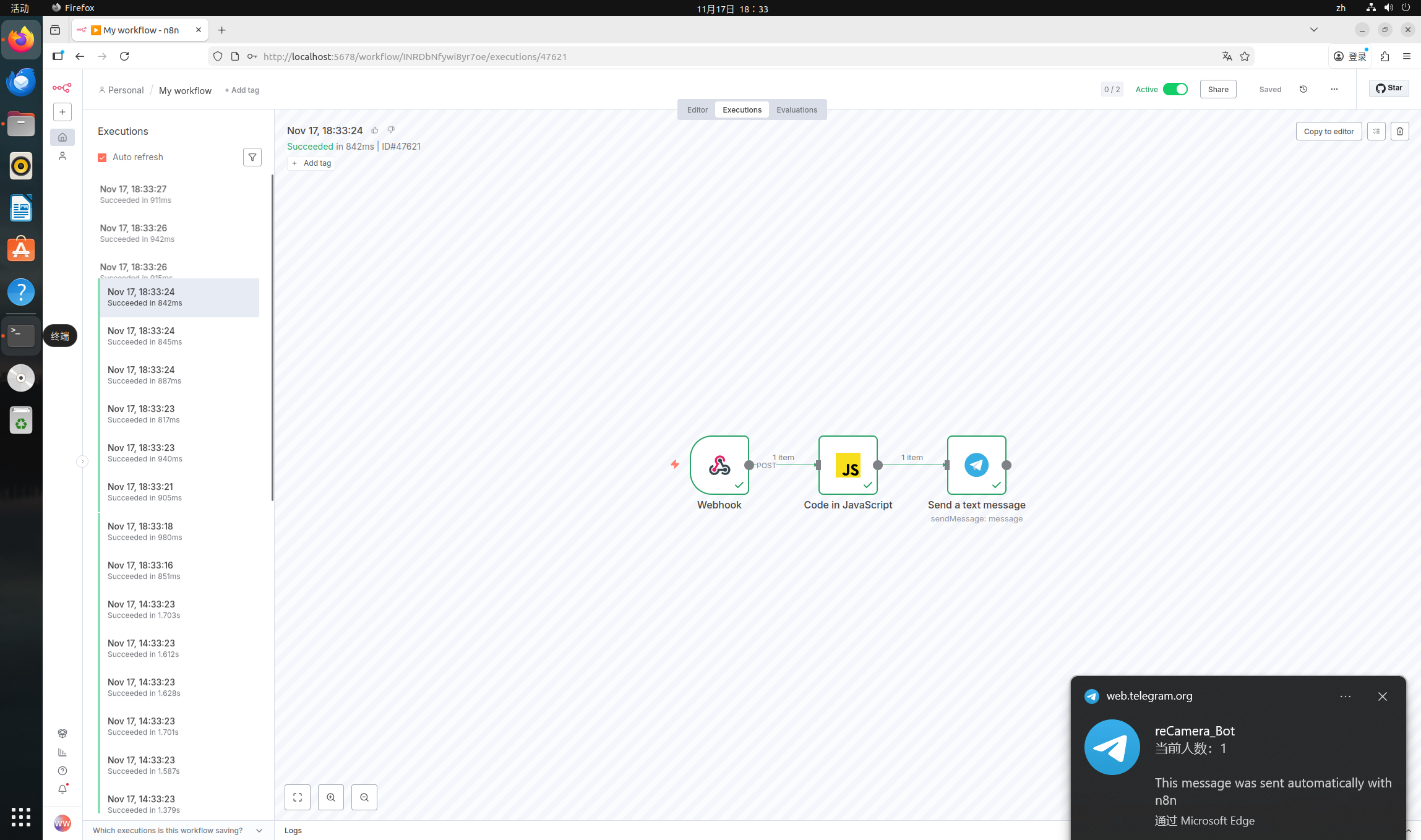 At this time, you will see that there are many timestamps on the left that have been refreshing. If you see that the timestamps have been refreshing, it means that your reCamera data has been connected to the n8n platform!