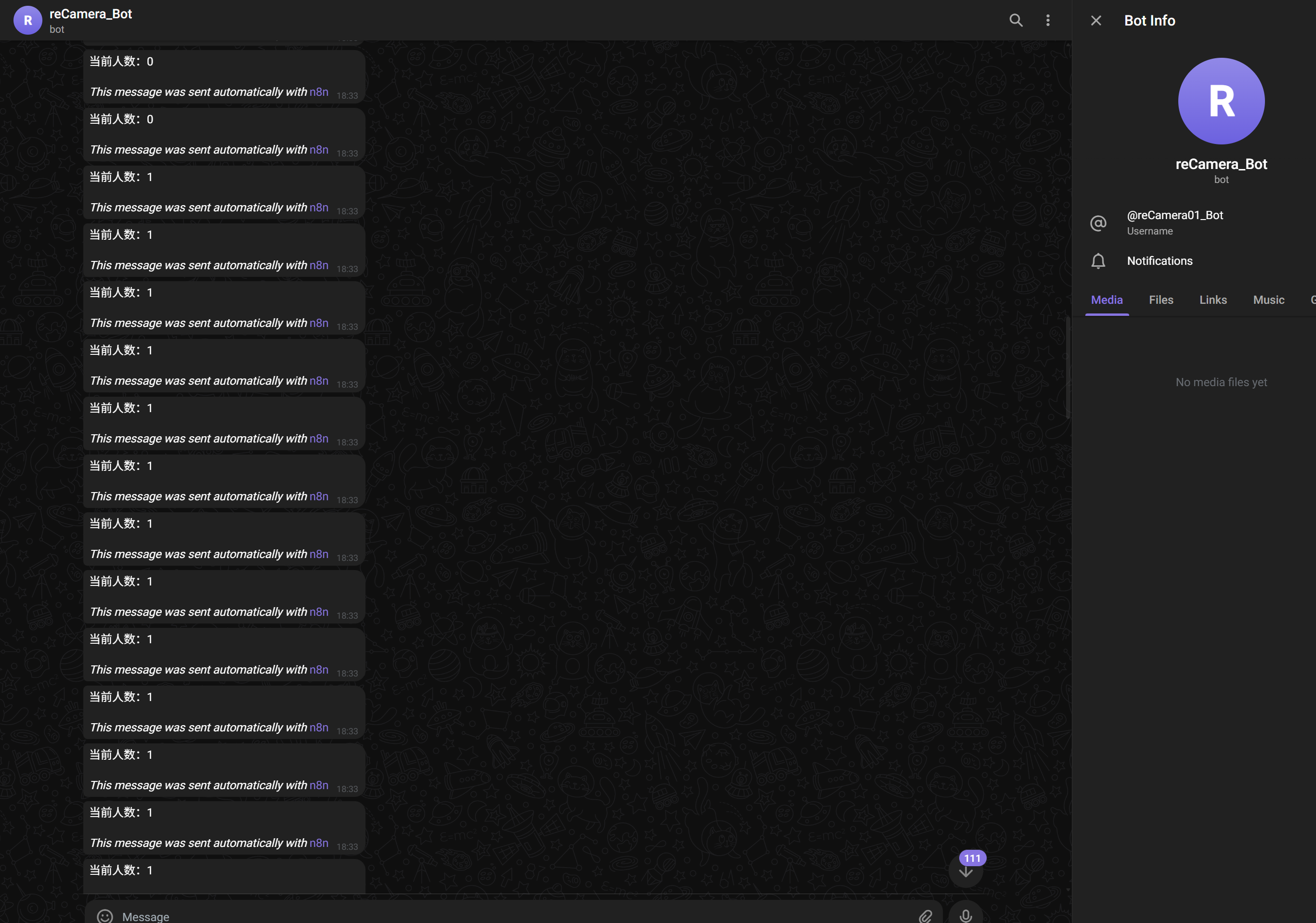 Then check your Telegram, there should be a lot of message reminders, at this time, you have successfully pushed the reCamera message to the Telegram!!!