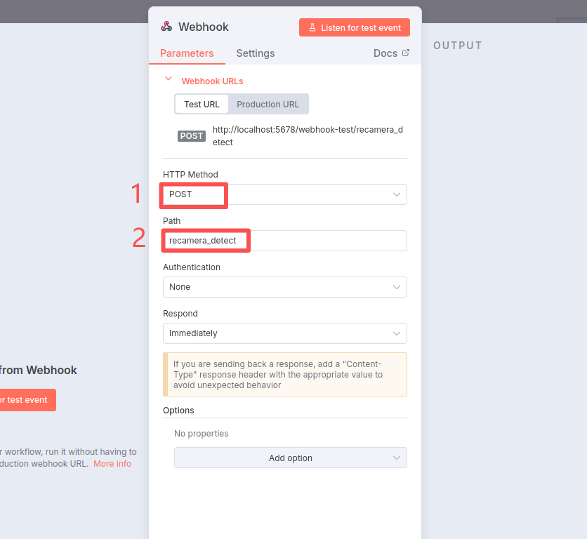 Now we have entered the configuration interface. Here we need to modify two places. First, select "HTTP Method" as "POST". Then, modify "Path" as any name. Here I will take "recamera_detect" as an example.