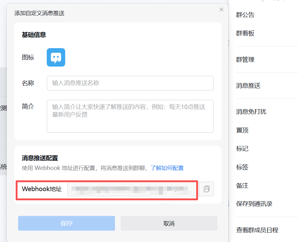 url: "https://xxxxxx" #此处填写你在群聊中配置的Webhook地址