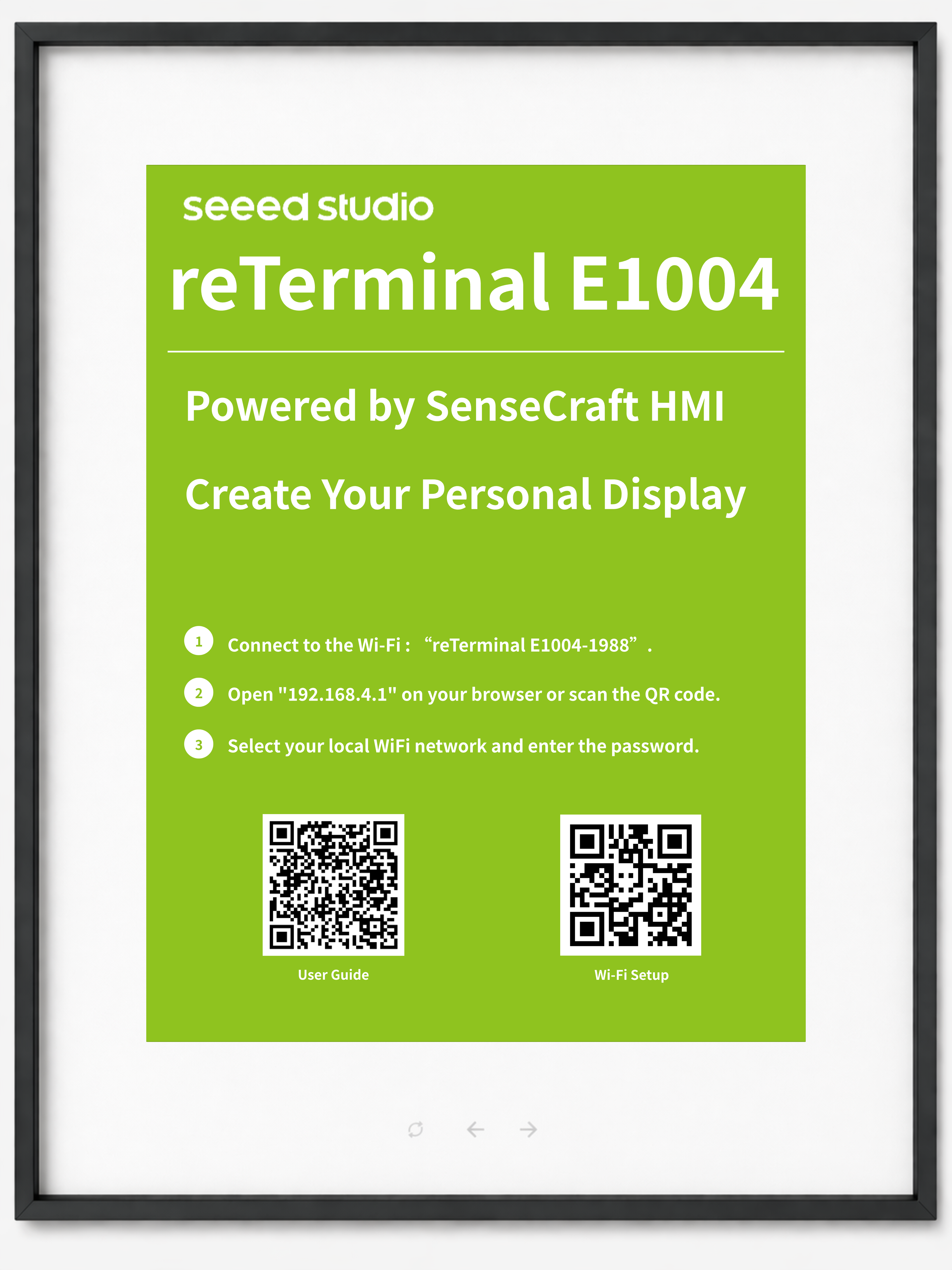 Step 1. Connect to the device's Wi-Fi access point from your smartphone or computer. The AP name will appear on the screen (no password required). The network credentials are reTerminal E1004-{MAC Address}.