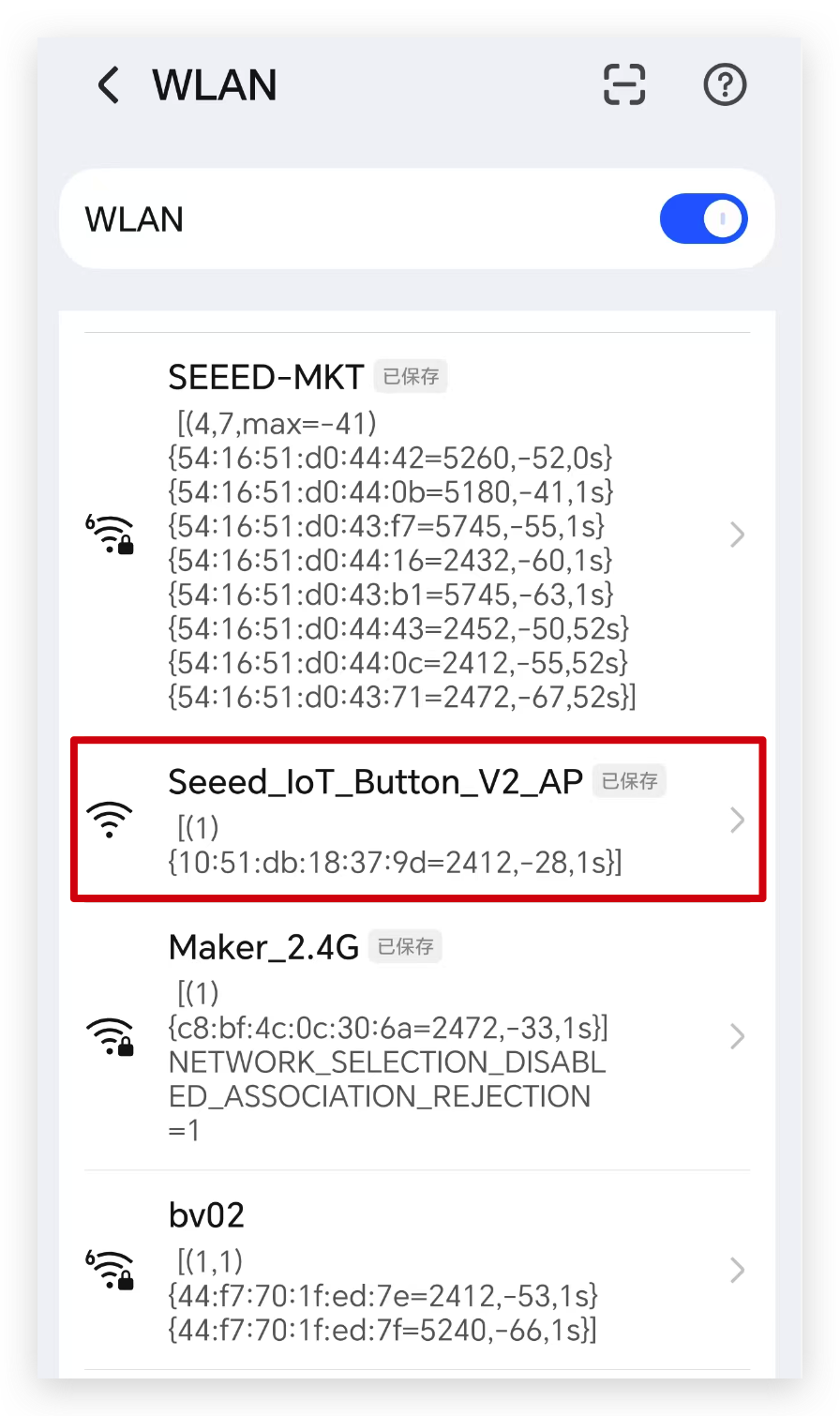 Step 6.1. After flashing the firmware, your IoT Button V2 will create a WiFi access point (AP) for initial configuration. The AP name will typically be Seeed_IoT_Button_V2_AP.
