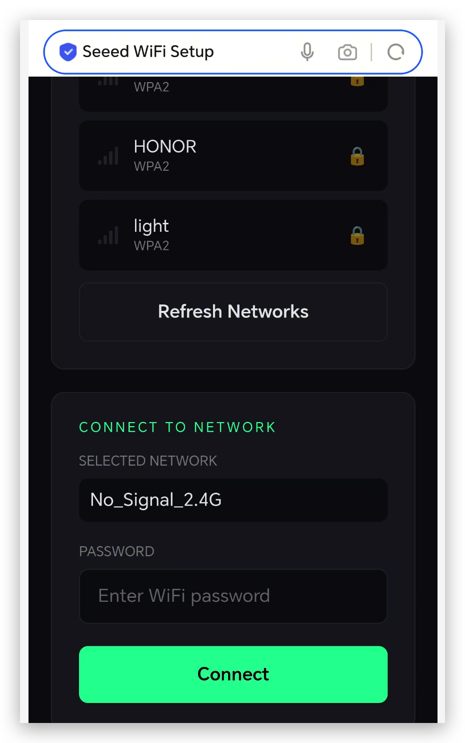 Step 6.3. A captive portal should automatically open. If not, open a web browser and navigate to http://192.168.4.1.