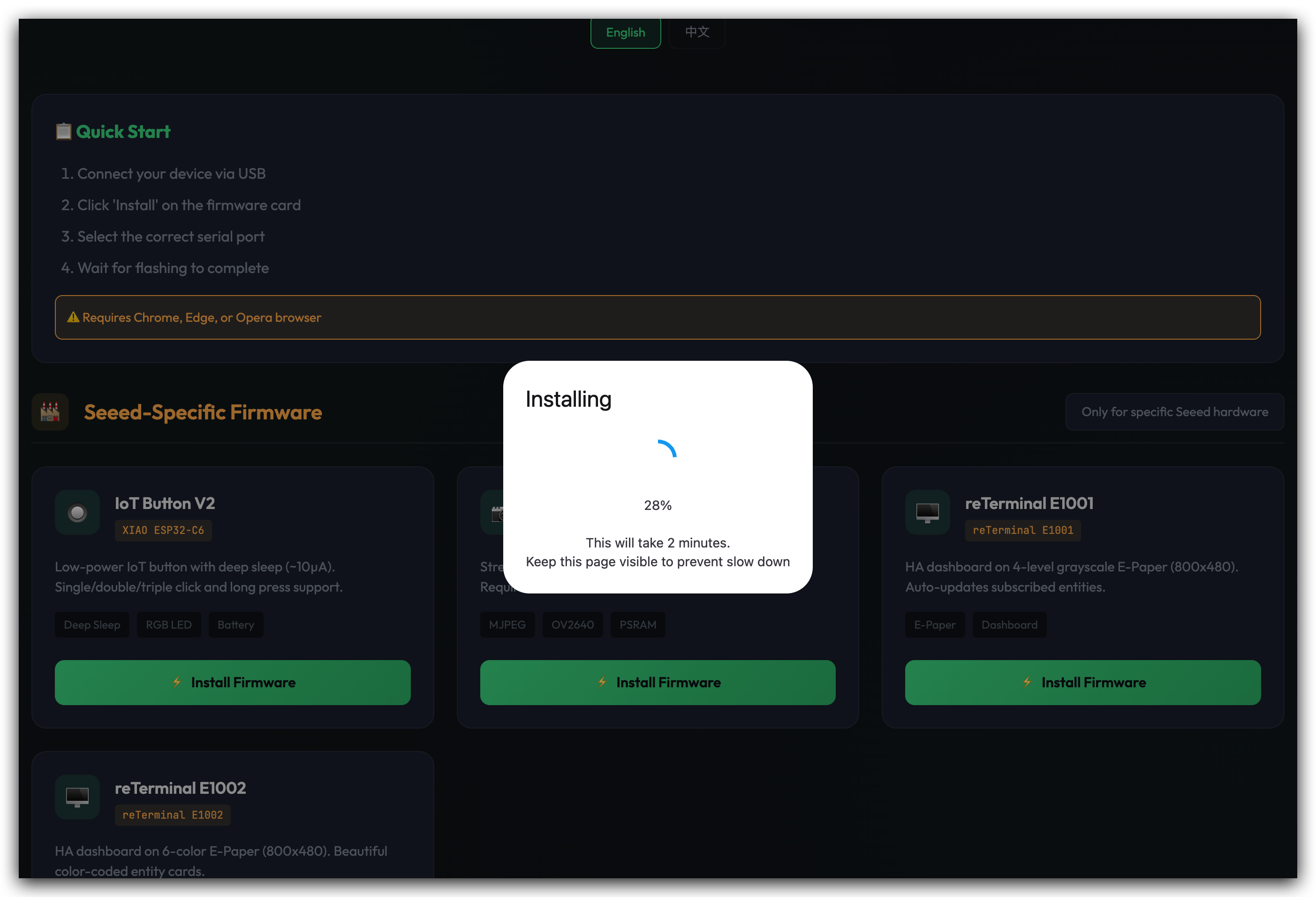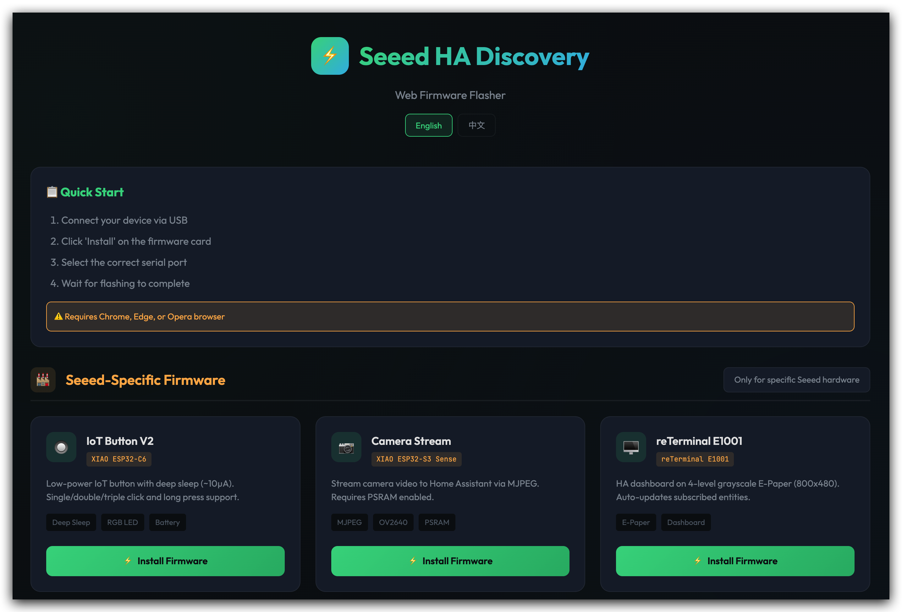 Open Google Chrome or Microsoft Edge browser and navigate to the Seeed HA Discovery Web Flasher: