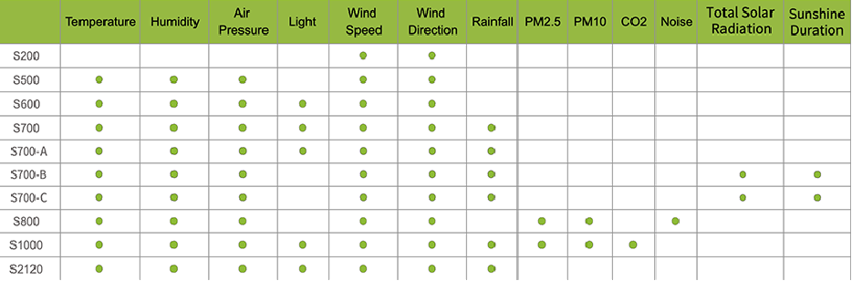 1つで複数の気象パラメータを測定: 気温、相対湿度、気圧、光強度、降雨量、PM2.5、PM10、風速、風向、CO2。