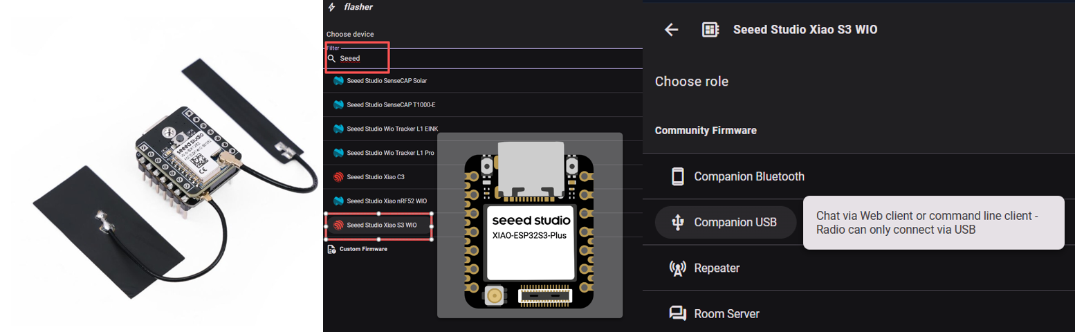 - コンピュータに接続し、web flasher を使用して "Seeed Studio Xiao S3 WIO"(Serial Companion)を書き込みます。