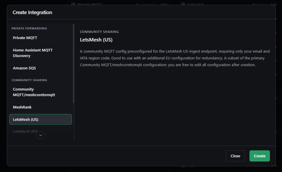 - "Add Integration" をクリックし、左側のリストから "LetsMesh (US)" を選択します。