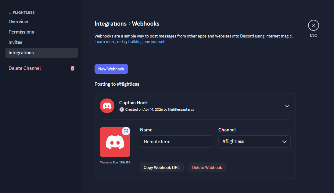 有効化されると、メッセージのフローが始まるはずです。問題が発生したり、期待したメッセージが表示されない場合は、サーバーログで報告されたエラーを確認するか、すべてのチャンネルを有効にして、少なくとも RemoteTerm ↔ Discord 間の連携が動作していることを確認してください。