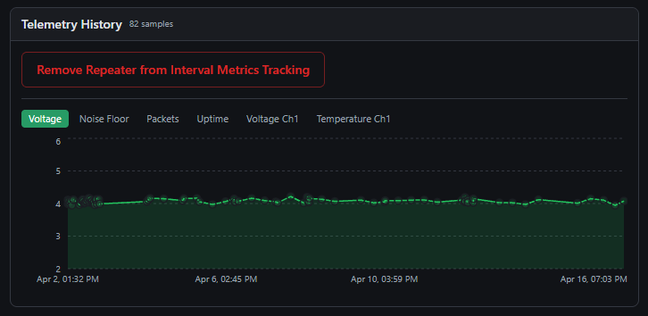 それらをクリックして、利用可能なメトリクスを表示します。中継器の場合、最新の有効なメトリクスが表示されます。自動テレメトリ取得を有効にしたばかりの場合は、すべての中継器および無線テレメトリフィールドが Home Assistant 内で埋まるまで、最大 8 時間待つ必要があるかもしれません。
