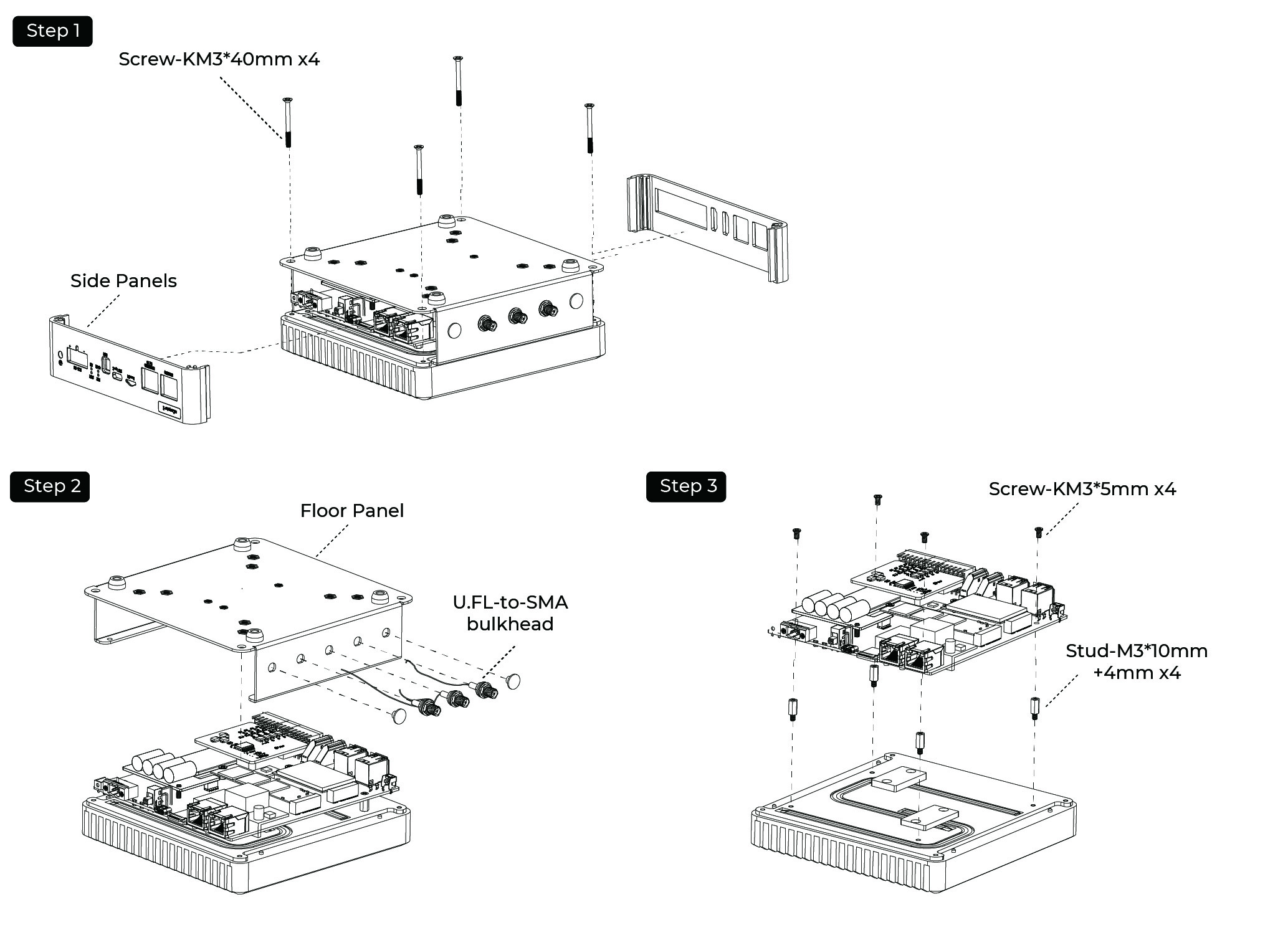 ステップ1: ボードのCM5モジュール側にUPSおよびPoEモジュールを取り付ける前に、提供された分解ガイドに従ってデバイス全体を分解します。