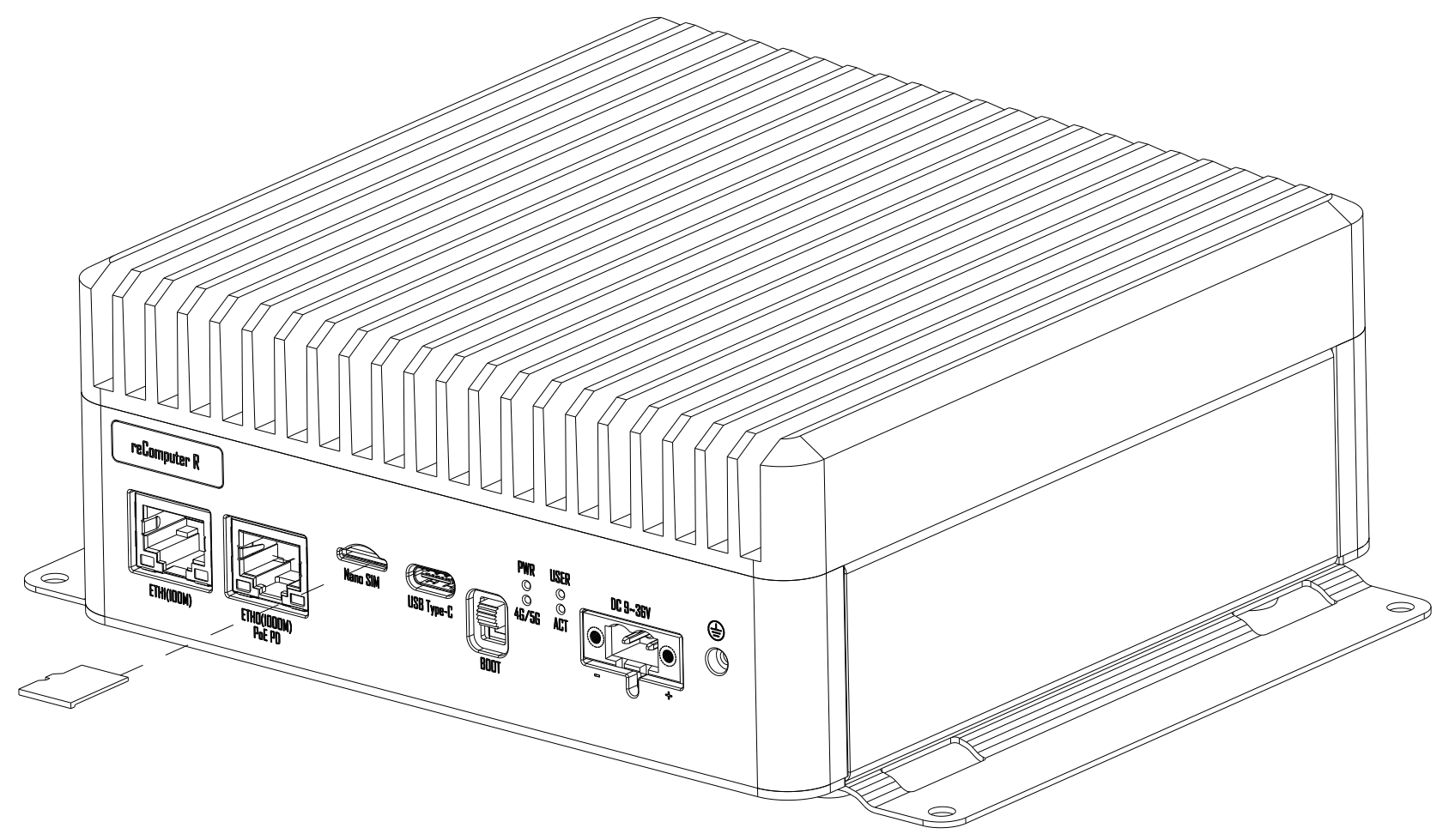 垂直取り付け方法もreComputer Industrial R2000に適していますが、取り付けブラケットはボックスに含まれておらず、別途購入が必要です。